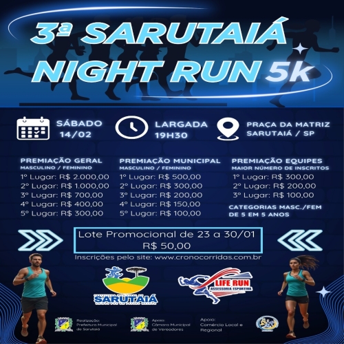 3ª CORRIDA SARUTAIÁ NIGHT RUN 5K